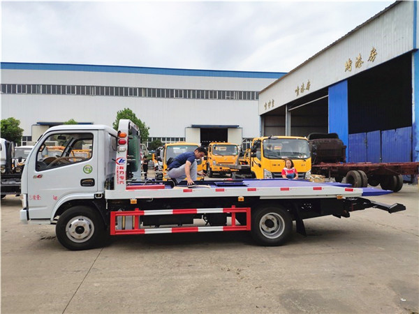 上裝配置:慶鈴五十鈴上裝平板一拖二型,平板長度為5.6米,3P2A折疊沖壓式平板。采用國標優質碳鋼多塊沖壓板制作或新型一次成型沖孔板,既減輕了整車重量,又增加了托舉和裝載能力。承載質量為4-5噸,采用40KN液壓絞盤,加粗鋼絲繩25米,一個工具箱,一個洗手箱,該車配備新款4個綁帶,L型抱胎架1對,后工作燈2只,可選裝LED長排警燈,其余標配。