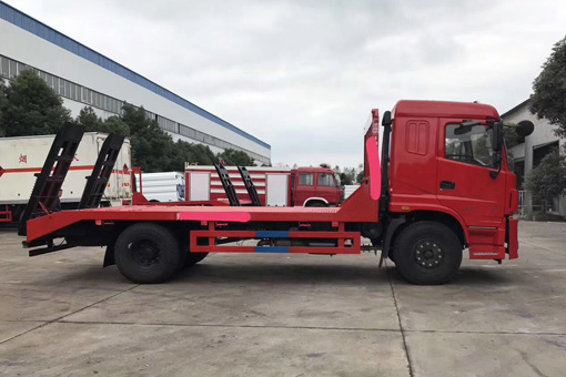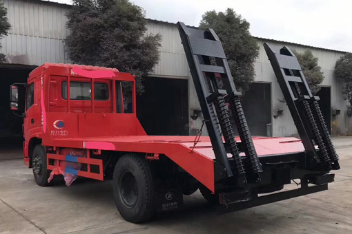 上裝配置:平板底板橫梁采用100*100*5mm方管,底板采用5mm或8mm花紋板,帶加密斜支撐,爬梯采用雙彈簧加強型設計,采用三道筋+雙彈簧加固焊接,可選裝液壓爬梯或折疊加長型液壓爬梯,斜坡處帶后支腿,平板有效板長6.8米(含斜坡),板寬2.5米(可選裝帶左右加寬伸展),可以選擇貨箱帶欄板設計,15噸及15噸以下噸位挖機首選車型!
